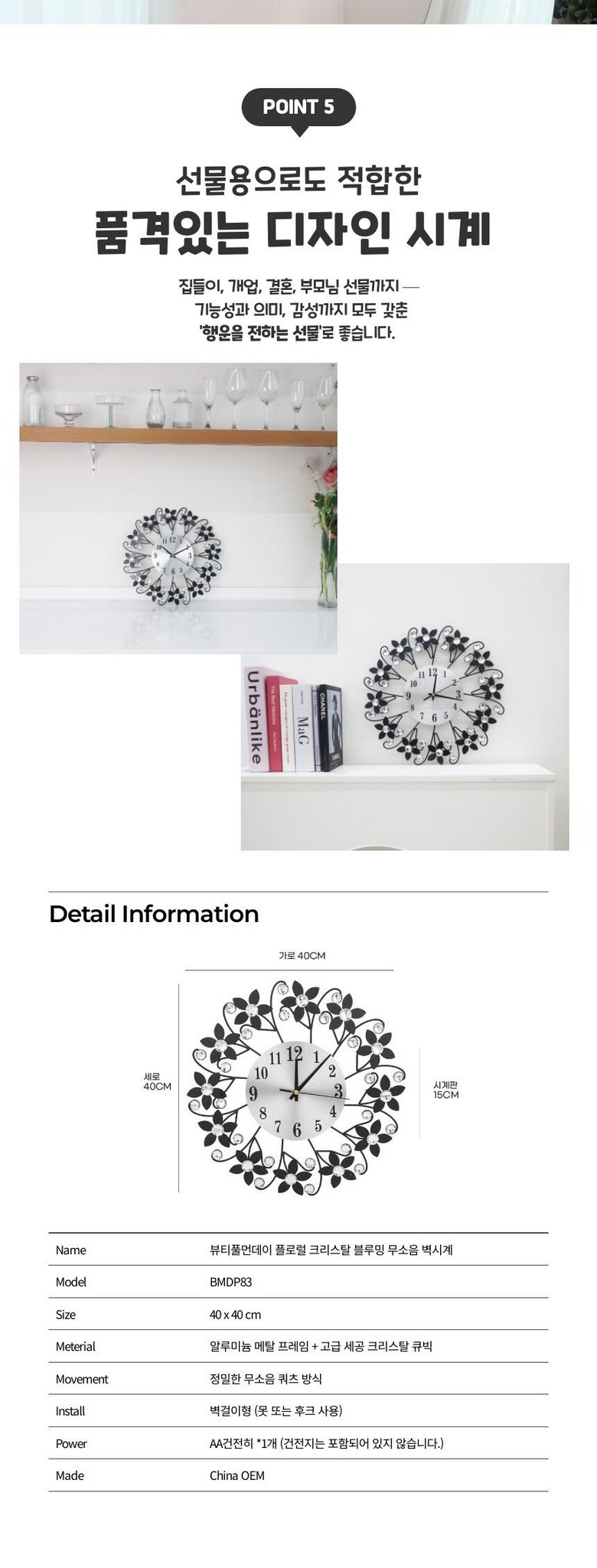 - 무소음/저소음: 무소음시계