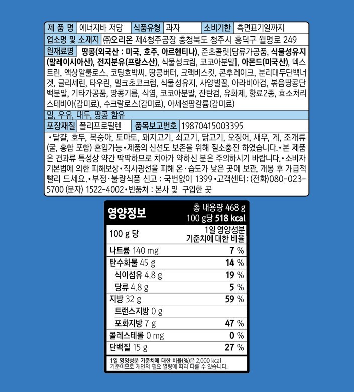 | 포장단위별 내용물의 용량(중량), 수량 | 468g x 2개 | 원재료명 및 함량 | 컨텐츠 참조 |