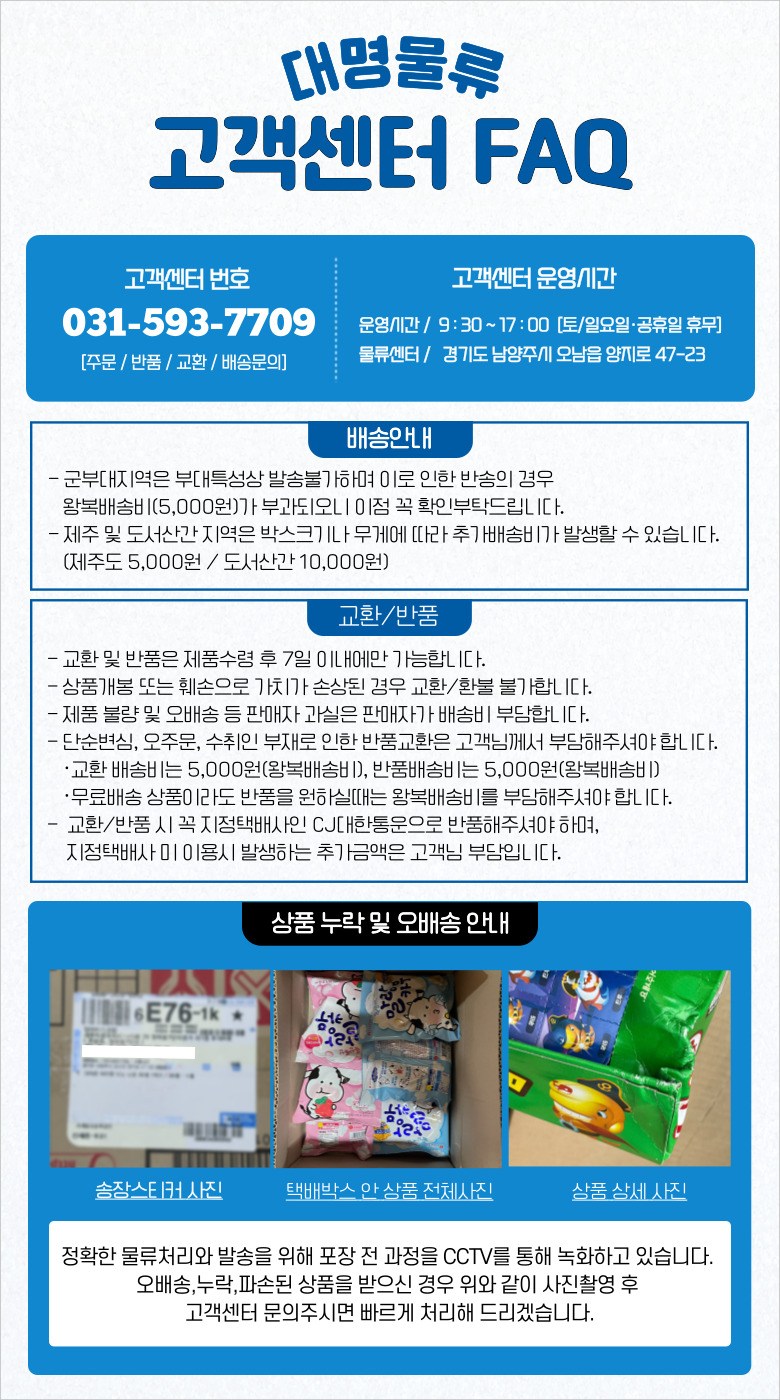 - ㆍ모니터 해상도의 차이로 인해 색상이나 이미지가 실제와 달라, 고객이 단순 변심으로 교환/반품을 무료로 요청하는 경우