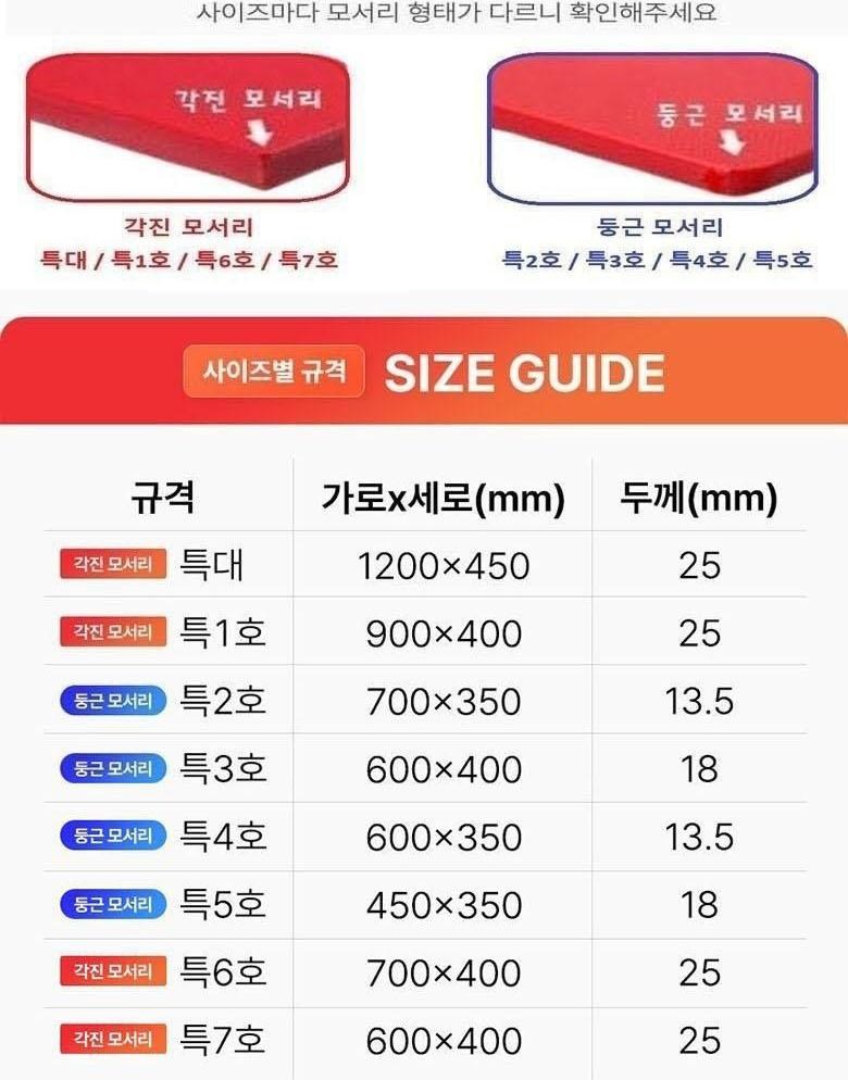 | 구성품 | 업소용 도마 | 크기 | 상품 상세페이지 참조 |