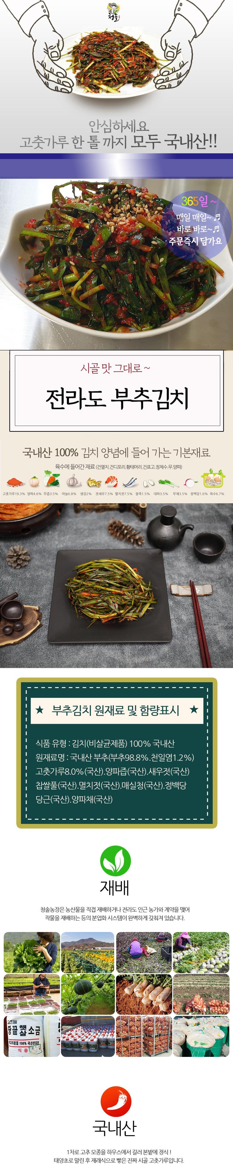 | 품목 또는 명칭 | 부추김치2kg/3kg | 포장단위별 내용물의 용량(중량),수량,크기 | 부추김치2kg/3kg |