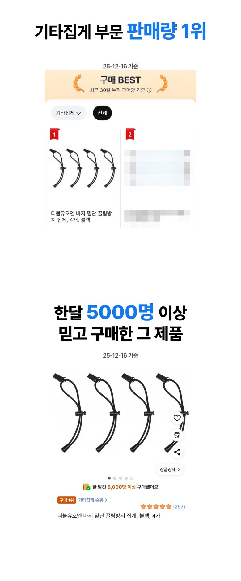 | 품명 및 모델명 | 더블유오엔 바지 밑단 끌림방지 집게 | 인증/허가 사항 | 상품 상세페이지 참조 |