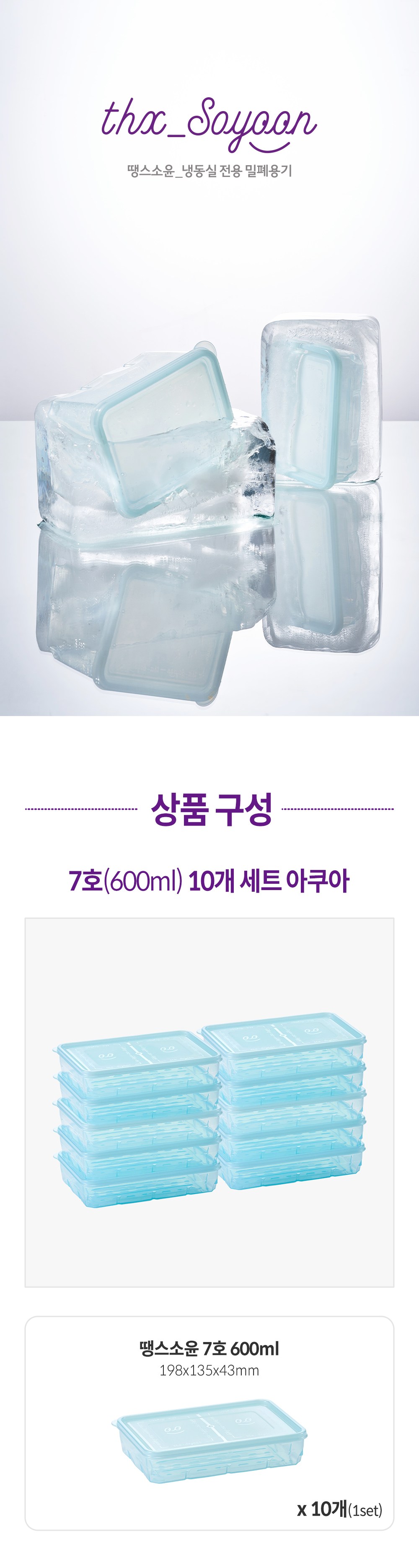 | 품명 및 모델명 | 땡스소윤 냉동 밀폐용기 7호 600ml 10개 세트 아쿠아 | 재질 | 뚜껑- 폴리에틸렌, 본체- 폴리프로필렌 |