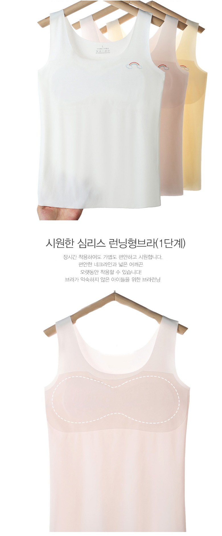 여아용 무지개 심리스 런닝형 학생 브라 1단계