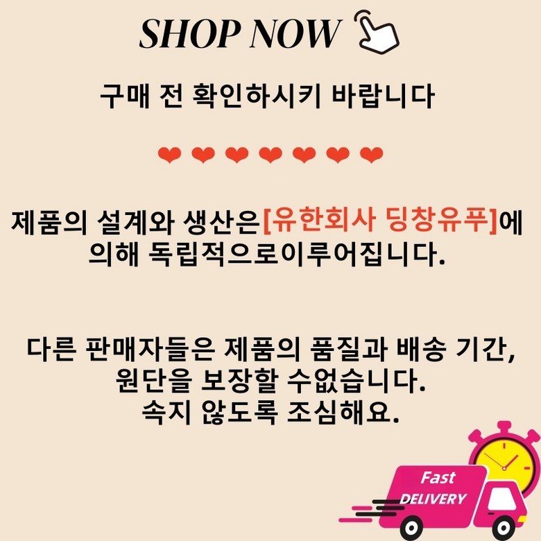 - ㆍ모니터 해상도의 차이로 인해 색상이나 이미지가 실제와 달라, 고객이 단순 변심으로 교환/반품을 무료로 요청하는 경우