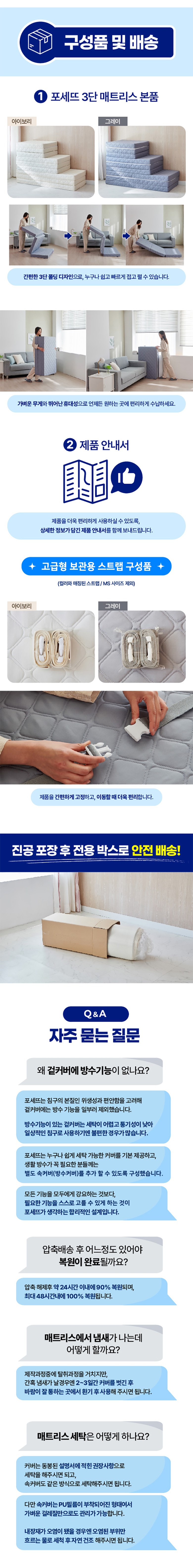 | 품명 | 포세뜨 국내 제조 3단 접이식 단단한 HR폼 매트리스 + 커버 세트 | KC 인증정보 | 해당없음 |