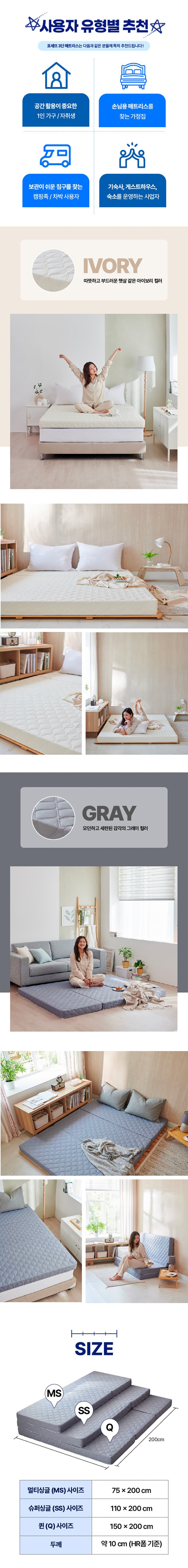 포세뜨 국내 제조 3단 접이식 단단한 HR폼 매트리스 + 커버 세트
