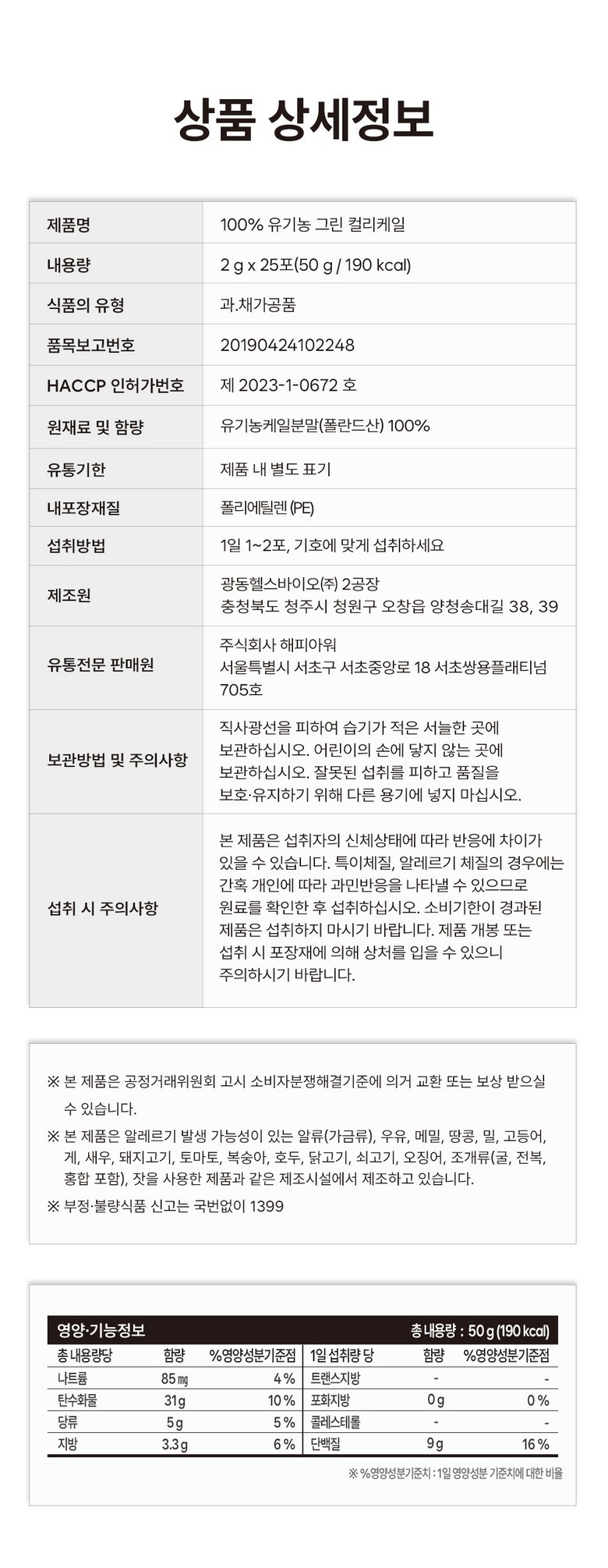 | 원재료명 및 함량 | 상품 상세페이지 참조 | 영양성분 | 상품 상세페이지 참조 |