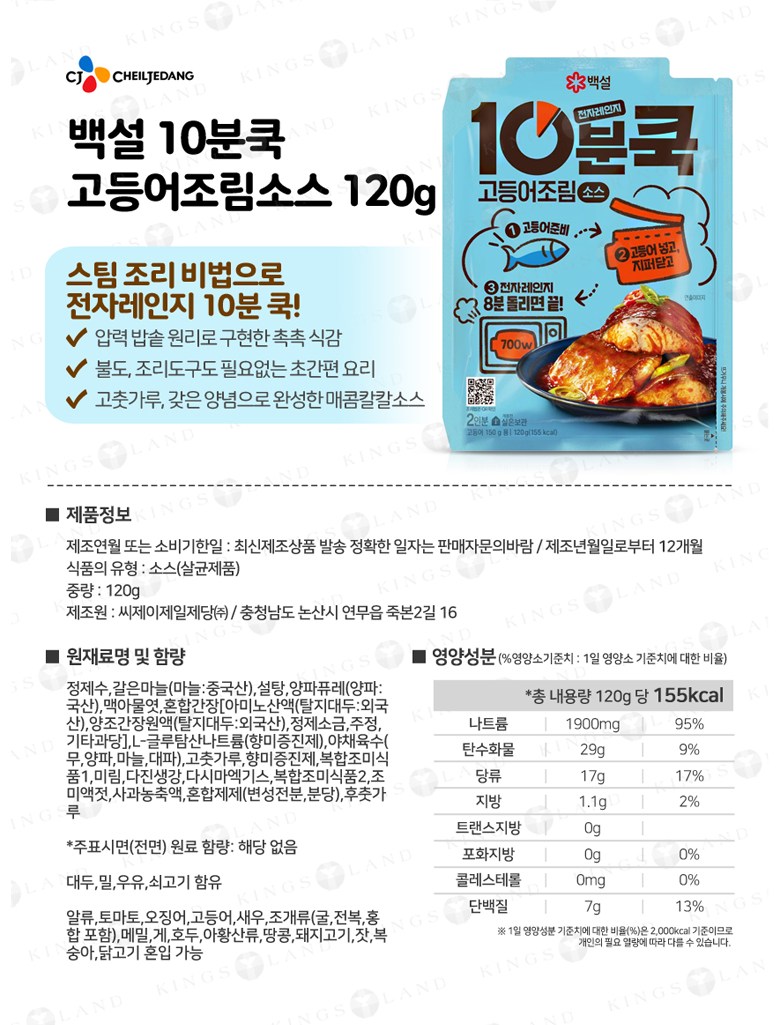 | 제품명 | 상품 상세페이지 참조 | 식품의 유형 | 상품 상세페이지 참조 |