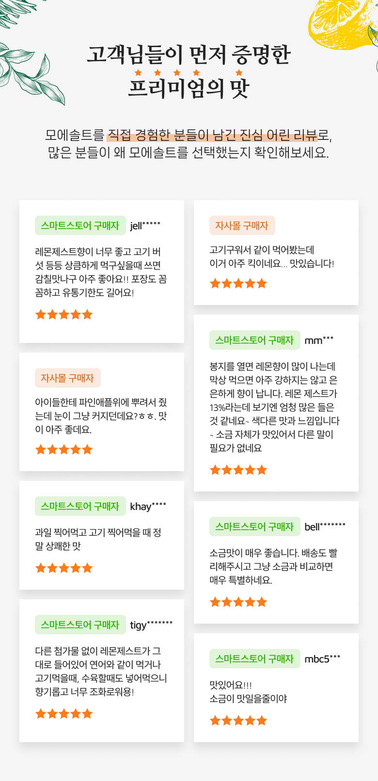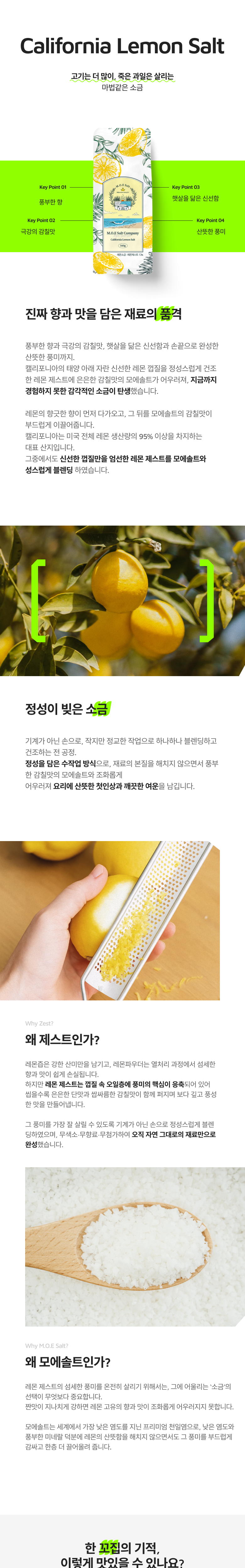 | 포장단위별 내용물의 용량(중량), 수량 | 160g | 원재료명 및 함량 | 천일염87%(경기도 안산시 단원구 동주염전:국산), 레몬제스트13%[레몬껍질100%(레몬:미국산)] |
