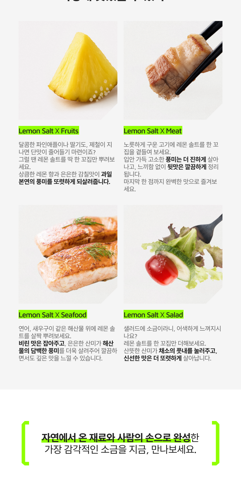 | 제품명 | 레몬소금 | 식품의 유형 | 가공소금 |