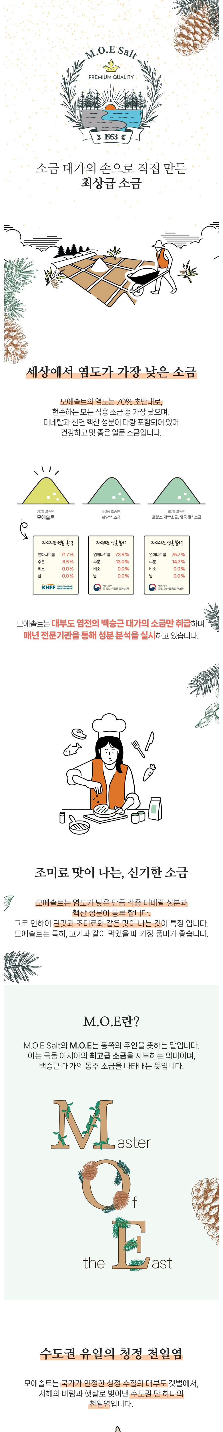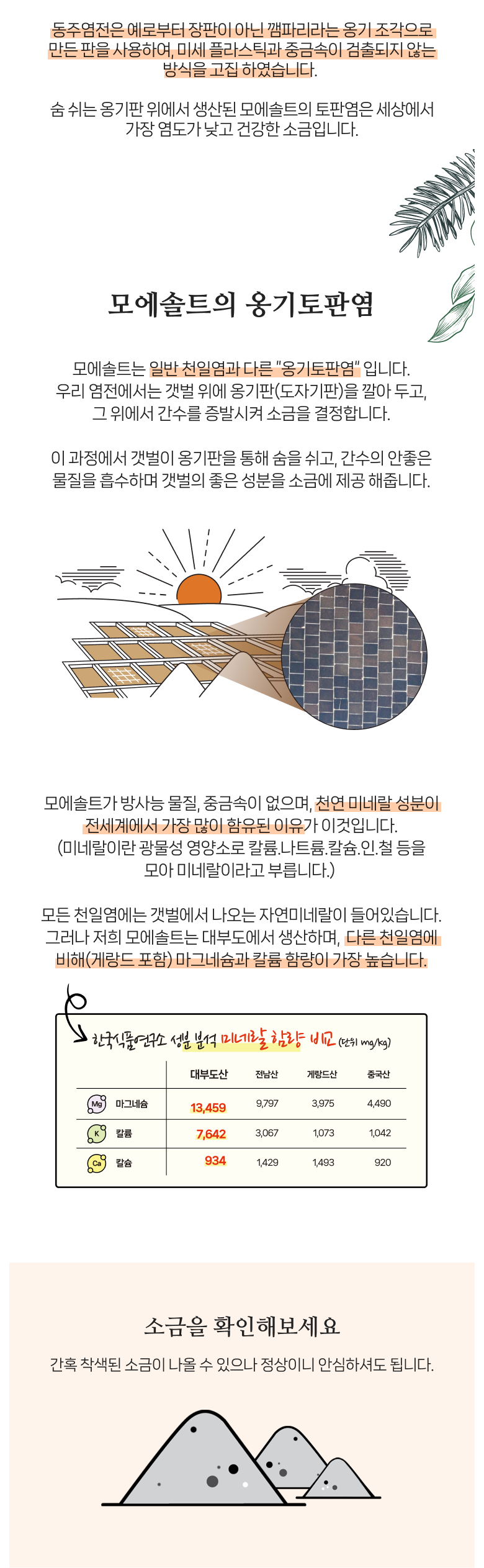 | 생산자 및 소재지 | (주)모에솔트 / 인천 연수구 송도미래로11번길 27 스마트스퀘어 B동 302호 | 제조연월일, 소비기한 또는 품질유지기한 | 소비기한(또는 유통기한) : 2030년 10월 31일 이거나 그 이후인 상품 제조년월일 : 2025년 11월 02일 이후인 제조상품 |