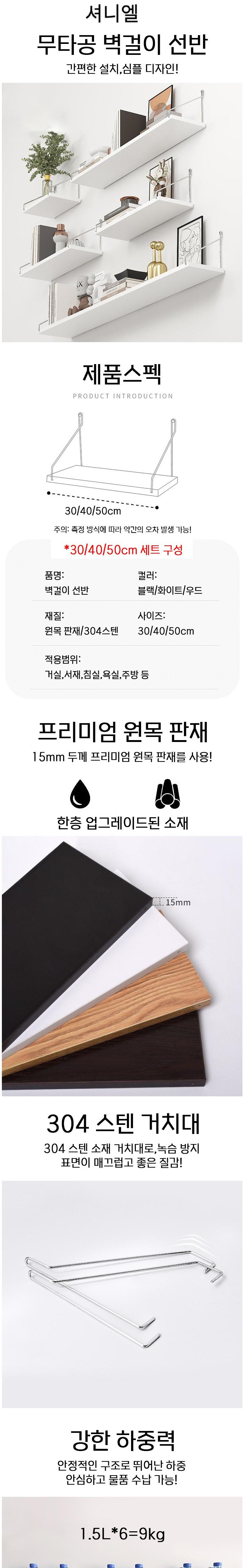| 품명 | 셔니엘 무타공선반 벽선반 원목 벽걸이선반 3단 (30+40+50cm) | KC 인증정보 | 해당없음 |