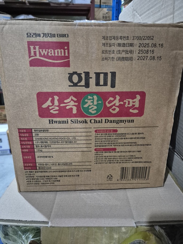 | 품목 또는 명칭 | 당면 | 포장단위별 내용물의 용량(중량),수량,크기 | 상세페이지표기 |