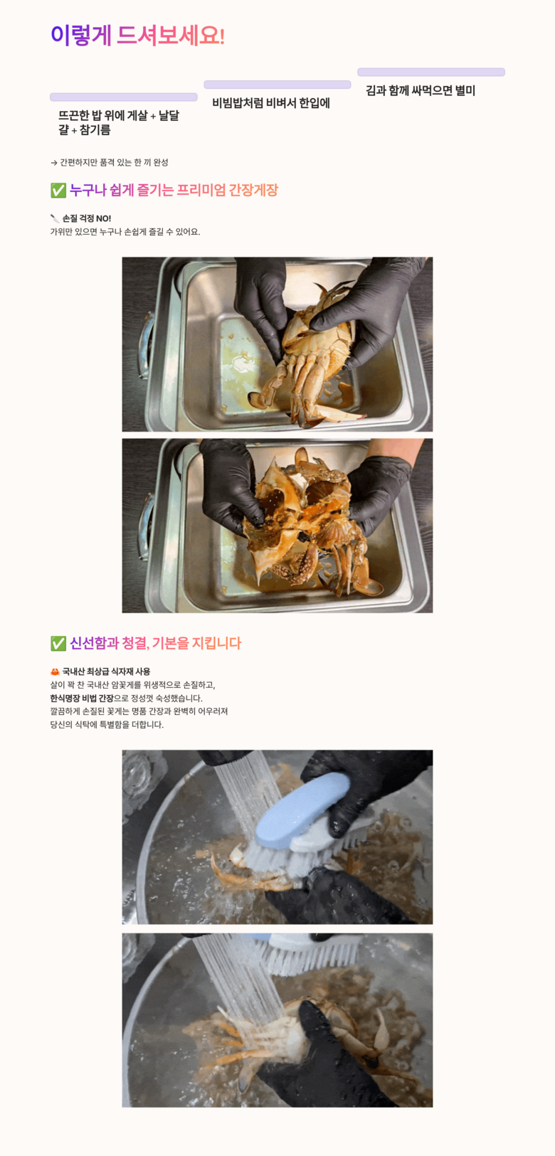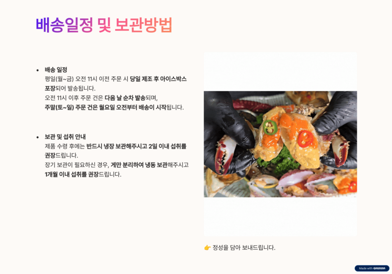 주문 접수 후, 국내산 알배기 암꽃게를 당일 조리하여 매장에서 직접 포장·발송합니다.
