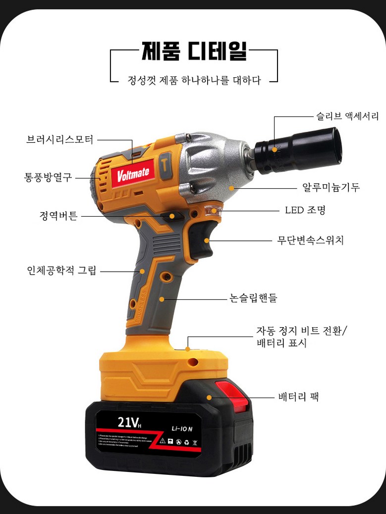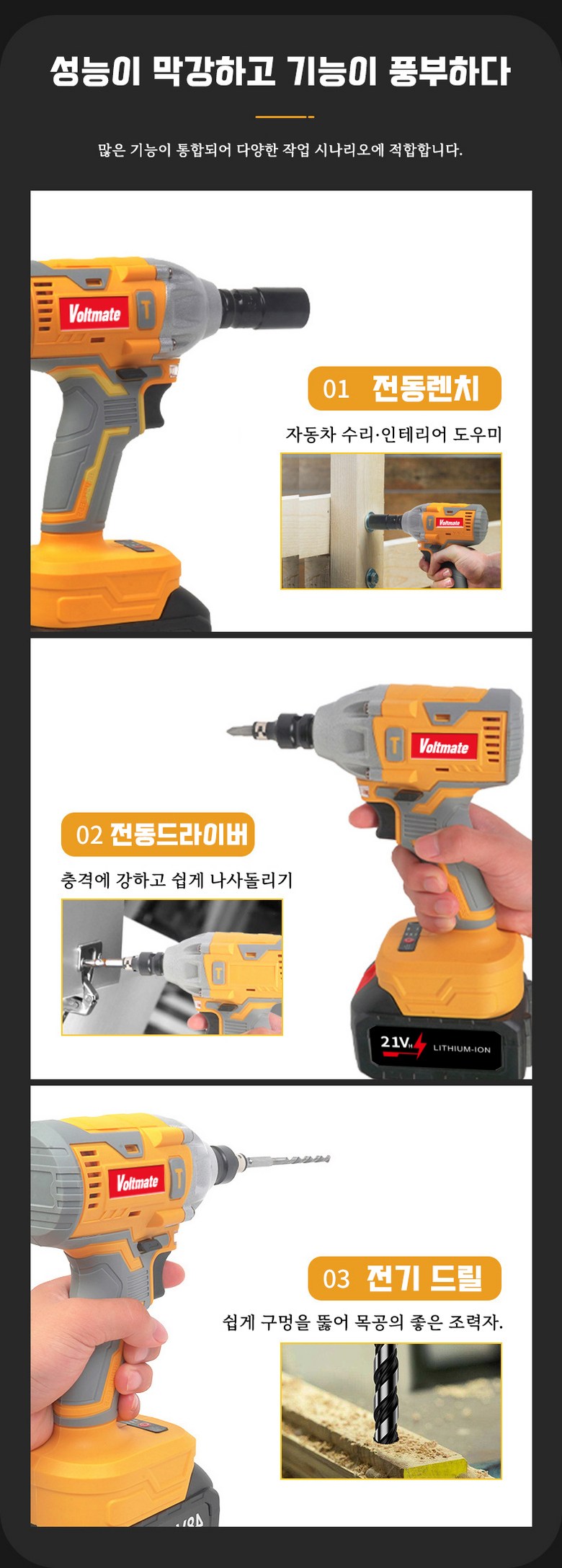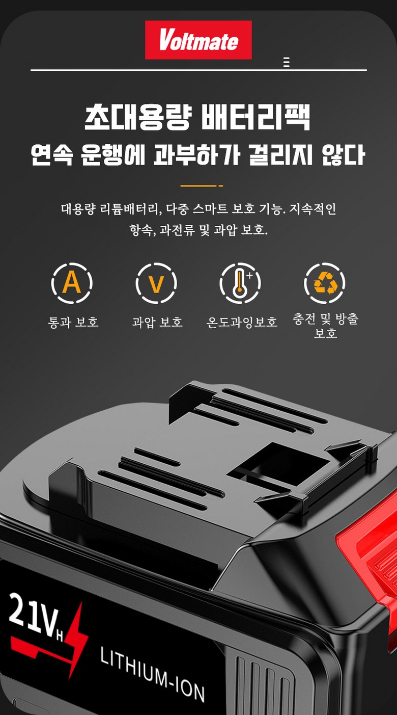 [국내발송] VoltMate 독일 21V 다용도 전동렌치 350N 4.0Ah 고출력무선임팩트드릴 무단변속 전문 전동렌치 임팩트드릴 해머전동드릴 배터리2개 세트
