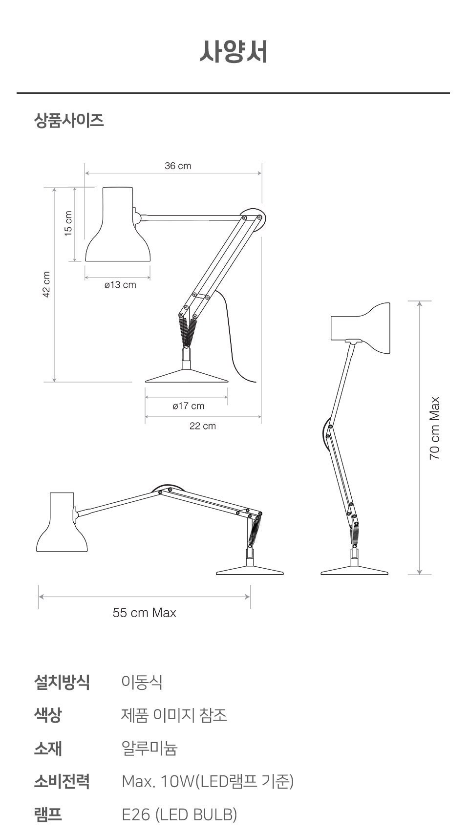 - 각도조절 여부: 각도조절 가능