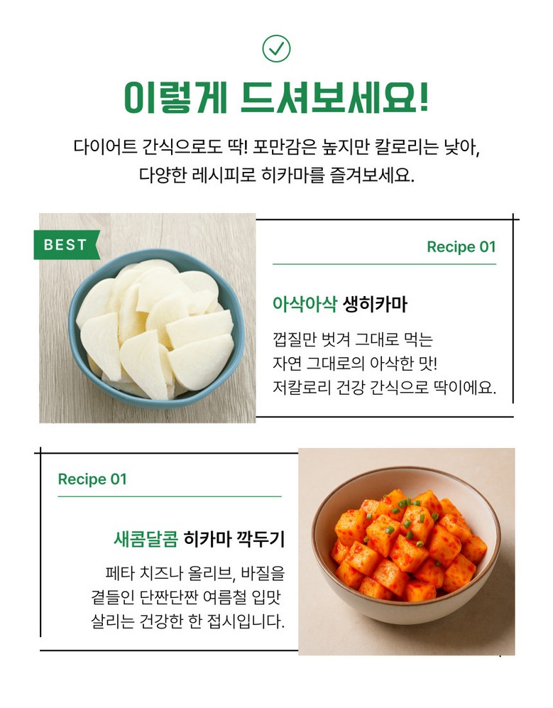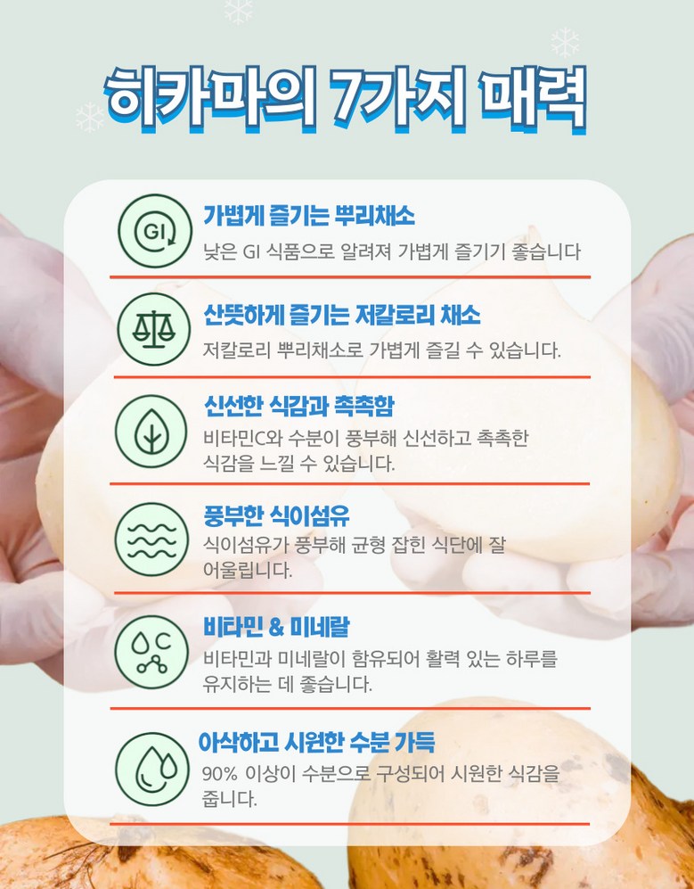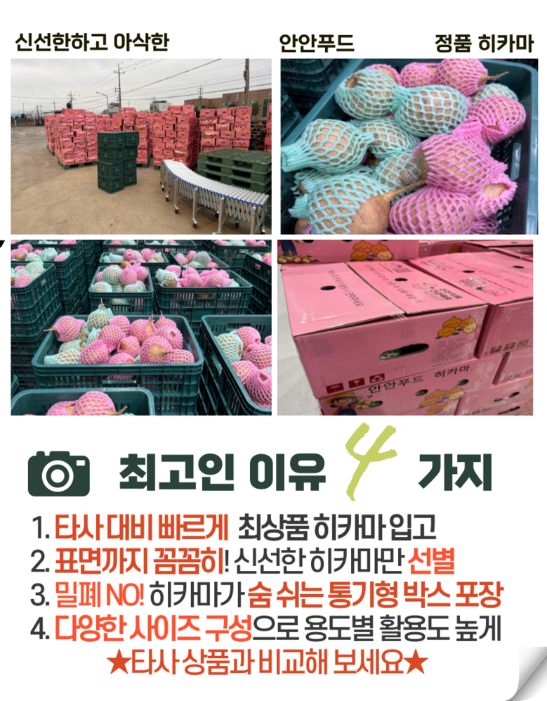 | 품목 또는 명칭 | 히카마 | 포장단위별 내용물의 용량(중량),수량,크기 | 1kg, 2.5kg, 5kg, 10kg |