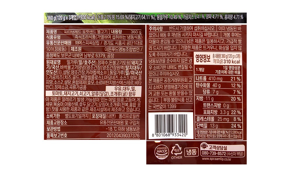 그리스어로 ‘파이’를 의미하는 피타. 파이처럼 알찬 속 재료를 자랑하는 피타브레드 포켓샌드예요. 납작한 모양의 빵 속, 달짝지근한 돈불고기토핑이 가득 들어차있지요. 한입 베어 물면 고소한 풍미와 풍성한 식감을 선사한답니다. 에어프라이어, 전자레인지로 조리해 간편하게 즐겨보세요.