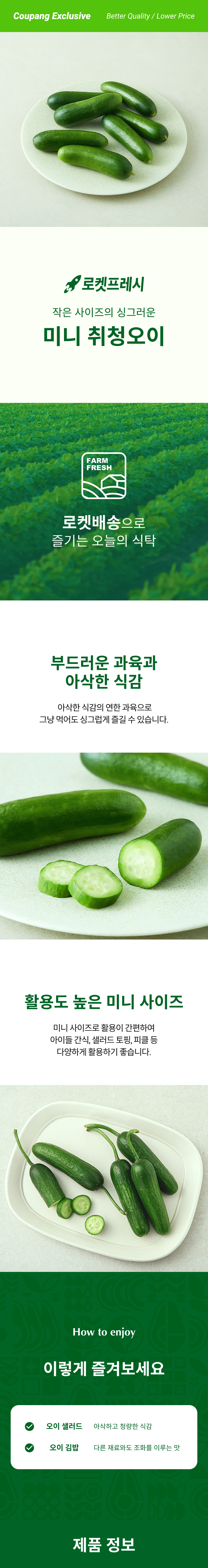 | 품목 또는 명칭 | 미니 취청오이 | 포장단위별 내용물의 용량(중량),수량,크기 | 10개입(350g) × 1개 |