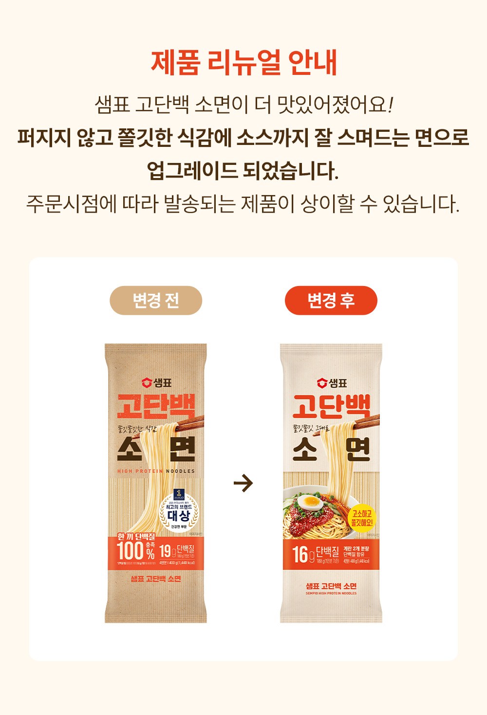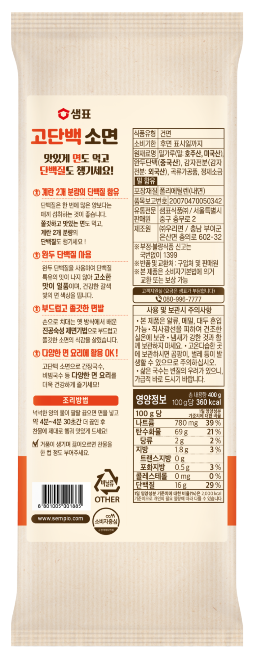 | 제품명 | 샘표 고단백 소면 | 식품의 유형 | 컨텐츠 참조 |