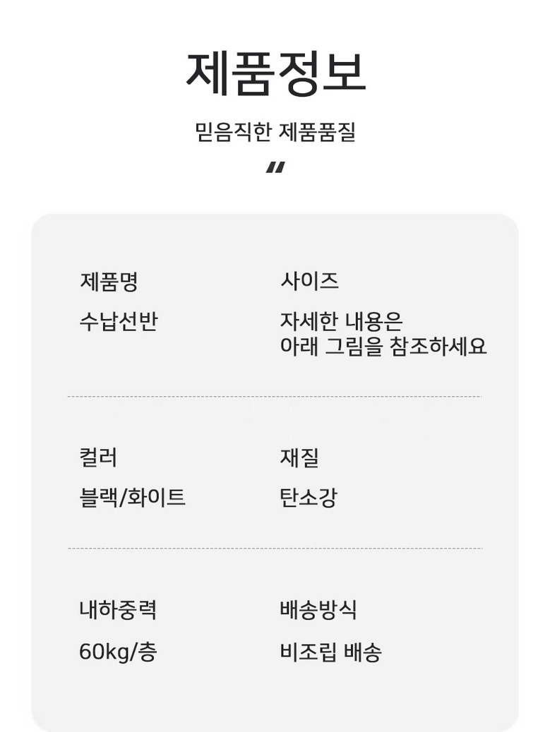 | 품명 | 선반 | KC 인증정보 | 상품 상세페이지 참조 |