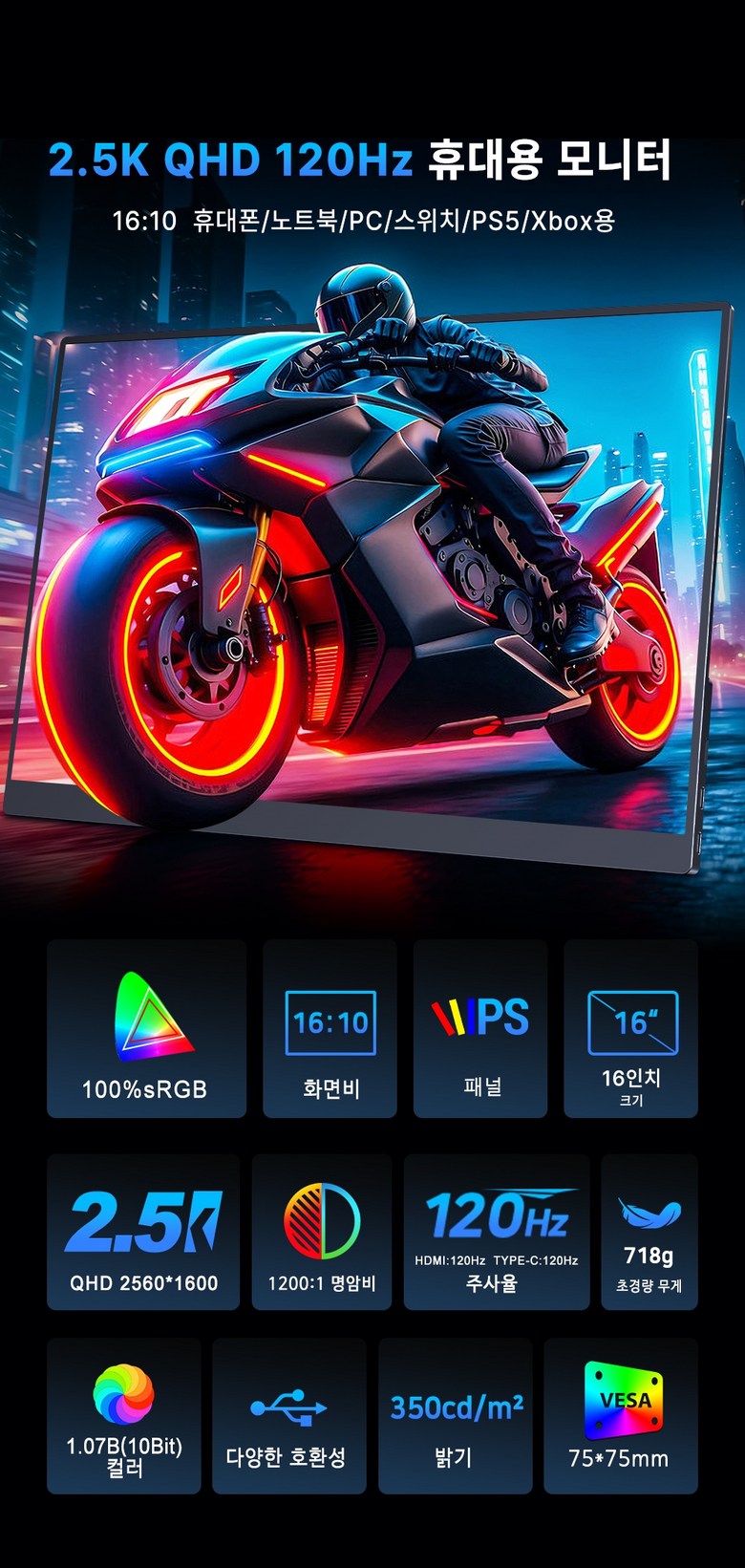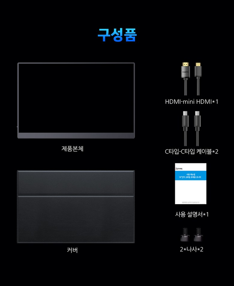 ZETYPE 2.5K QHD 게임용 120Hz 16인치 포터블 모니터 DEX 초경량 휴대용 모니터 UGame