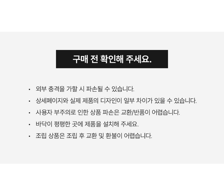 - ㆍ교환/반품에 관한 일반적인 사항은 판매자가 제시사항보다 관계법령이 우선합니다.