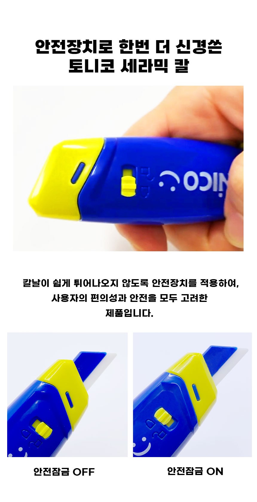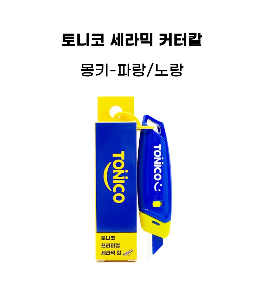 토니코 프리미엄 자석 택배용 세라믹 안전 커터칼 몽키, 파랑 + 노랑, 1개