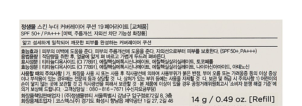 | 용량(중량) | 14g | 제품 주요 사양 | 모든 피부용 |