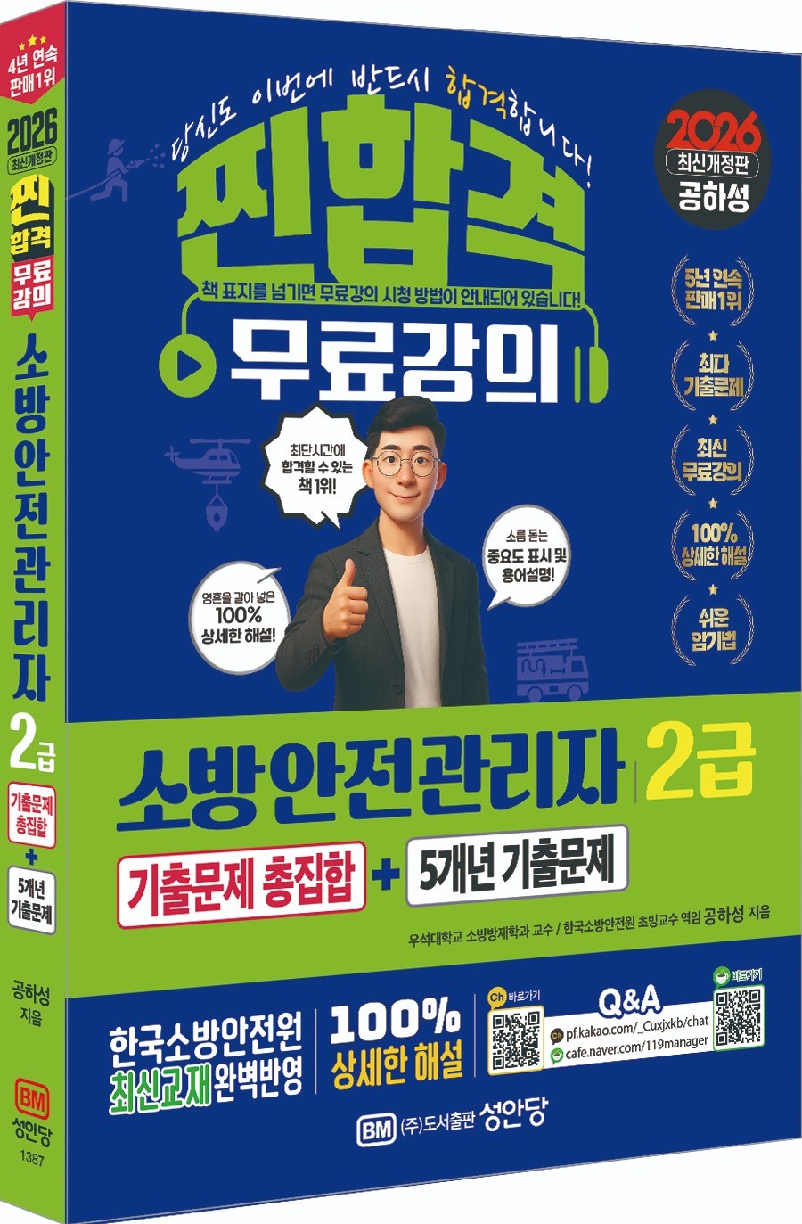 | 도서명 | [성안당]2026 찐!합격 소방안전관리자 2급 기출문제 총집합+5개년 기출문제 | 저자, 출판사 | 공하성 , 성안당 |