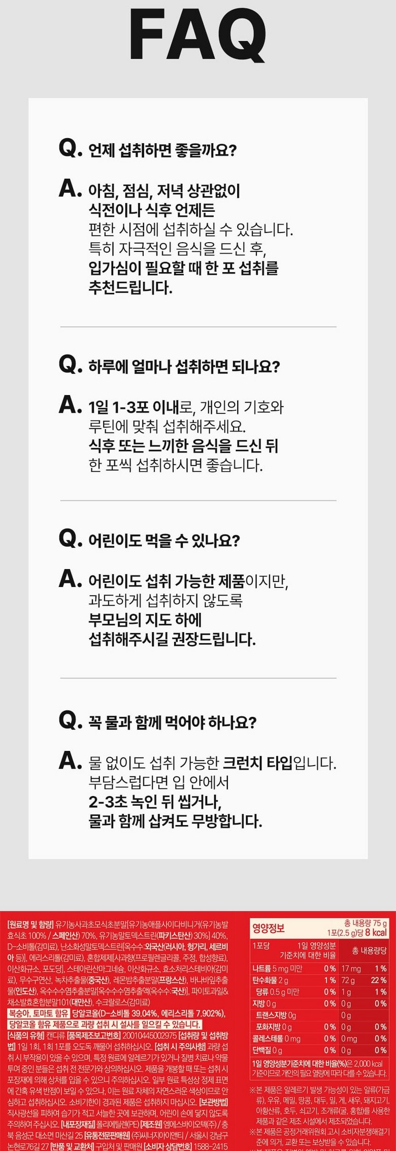 | 제품명 | 상품 상세페이지 참조 | 식품의 유형 | 상품 상세페이지 참조 |