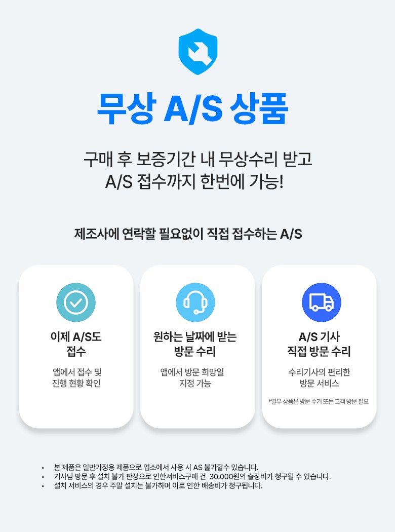 - ㆍ제조사의 사정 (신모델 출시 등) 및 부품 가격 변동 등에 의해 무료 교환/반품으로 요청하는 경우