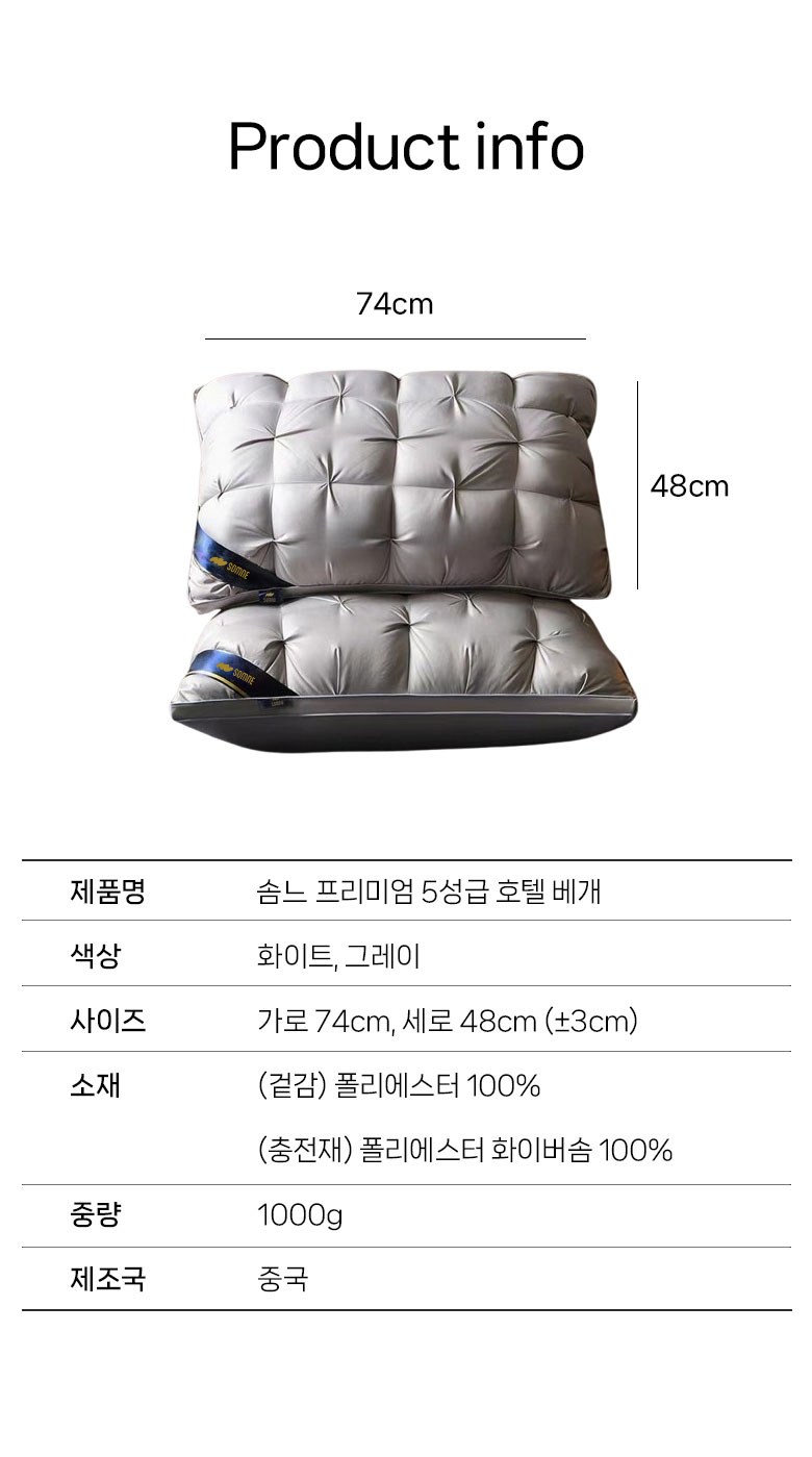 | 치수 | 74*48 | 제품구성 | 베개 |