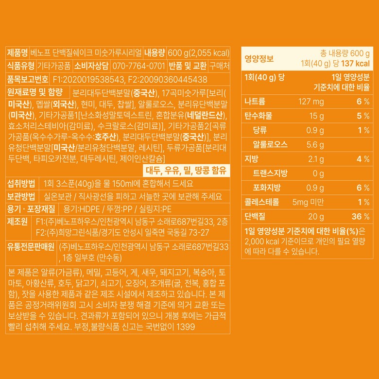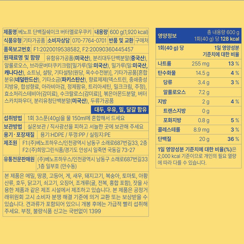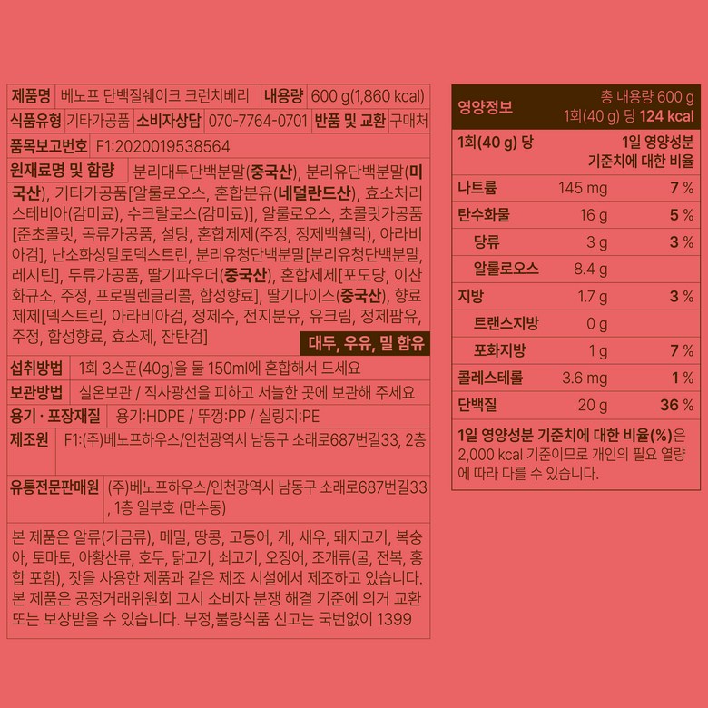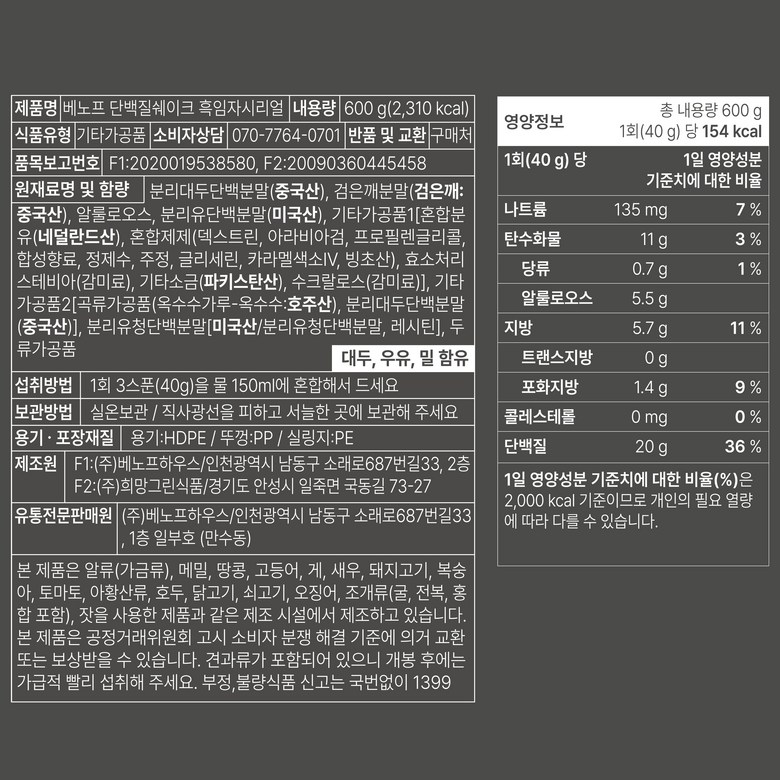 | 제품명 | 상품 상세페이지 참조 | 식품의 유형 | 상품 상세페이지 참조 |