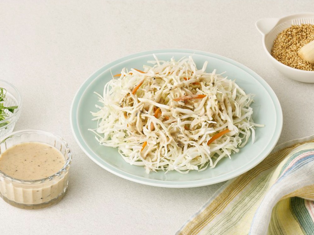 고소한 검정깨와 부드러운 마요소스를 적절히 배합한 드레싱입니다. 액상 알룰로오스를 사용해 깔끔한 단맛이 돋보인답니다. 특히 풋풋한 풍미의 양배추와 잘 어울려요. 얇게 채 썬 양배추 샐러드의 드레싱으로 활용하거나, 아삭하게 데친 연근에 무쳐 드셔세요.