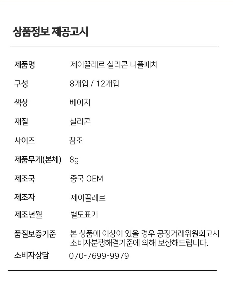 | 치수 | 7CM | 제조자(수입자) | 제이끌레르 협력업체 |
