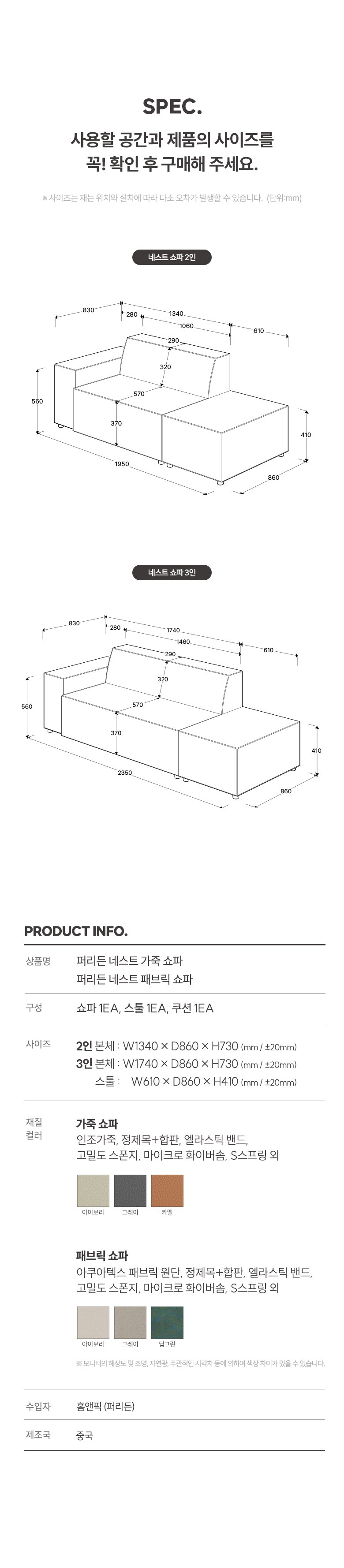 - 사이즈: 소파(1340 x 860 x 730 mm), 스툴(610 x 860 x 410 mm)