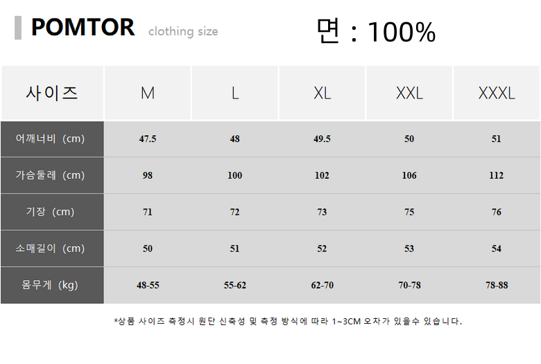 | 제품 소재 | 면:100% | 색상 | 상품 상세페이지 참조 |