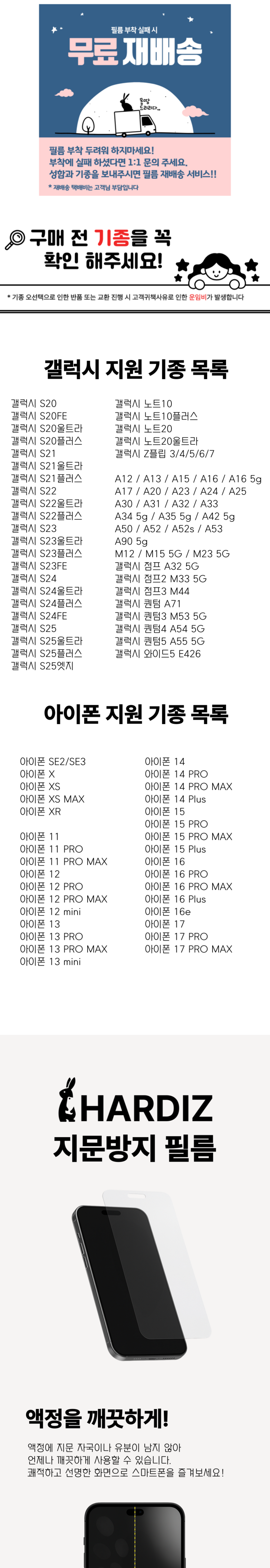| 품명 및 모델명 | 하디즈 지문방지필름 | 인증/허가 사항 | 법에 의한 인증·허가 등을 받았음을 확인할 수 있는 경우 그에 대한 사항 |