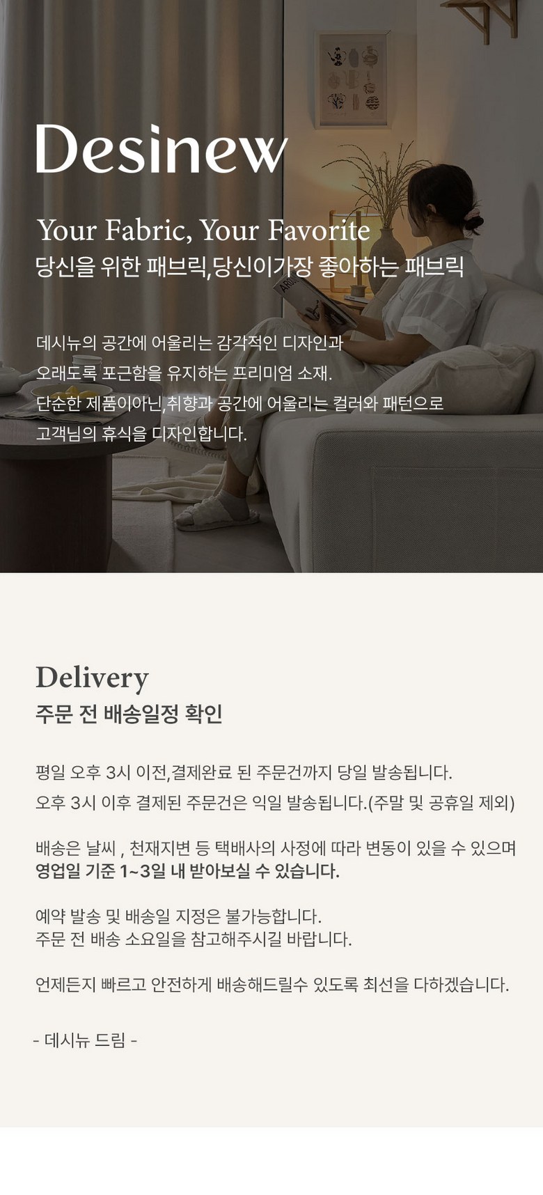 | 배송기간 | ㆍ도서산간 지역 등은 배송에 3-5일이 더 소요될 수 있습니다. - 천재지변, 물량 수급 변동 등 예외적인 사유 발생 시, 다소 지연될 수 있는 점 양해 부탁드립니다. | ||