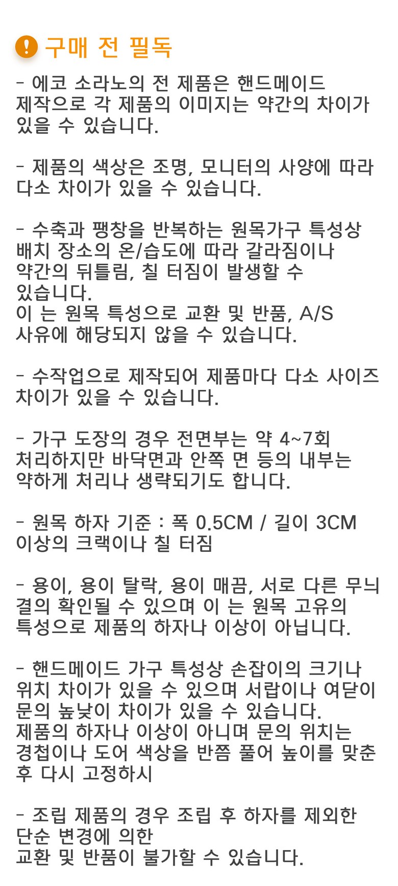 - ㆍ교환/반품에 관한 일반적인 사항은 판매자가 제시사항보다 관계법령이 우선합니다.