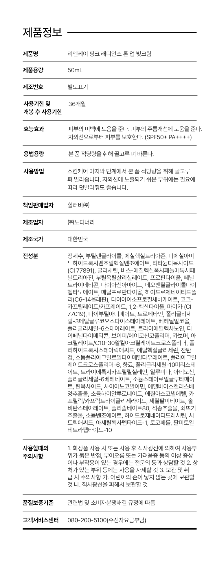 | 화장품제조업자, 화장품책임판매업자 및 맞춤형화장품판매업자 | 컨텐츠 참조 | 제조국 | 컨텐츠 참조 |