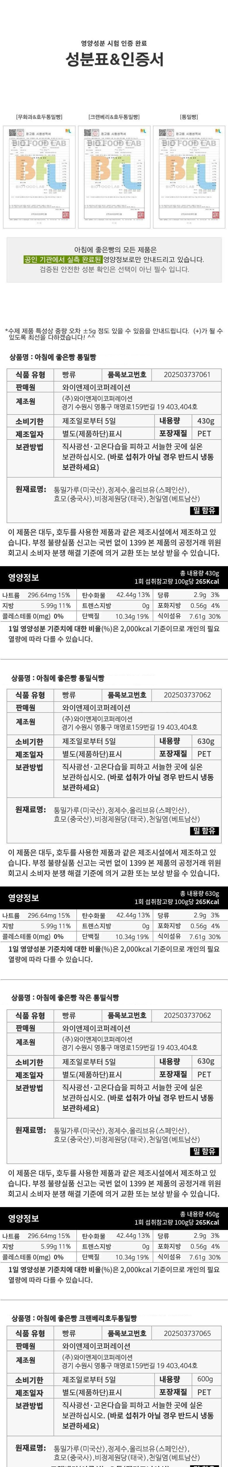 | 제품명 | 아침에 좋은빵 | 식품의 유형 | 가공식품 빵류 |