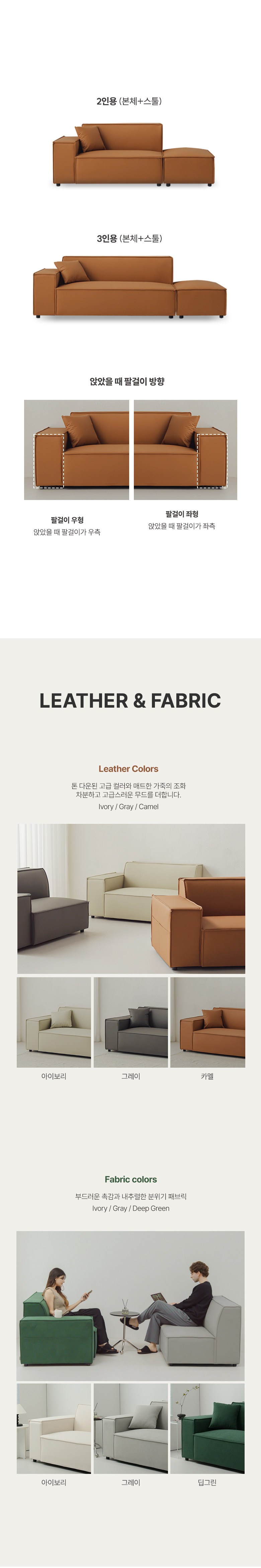 - 사이즈: 소파(W1740 x D860 x H730 mm), 스툴(W610 x D860 x H410 mm)