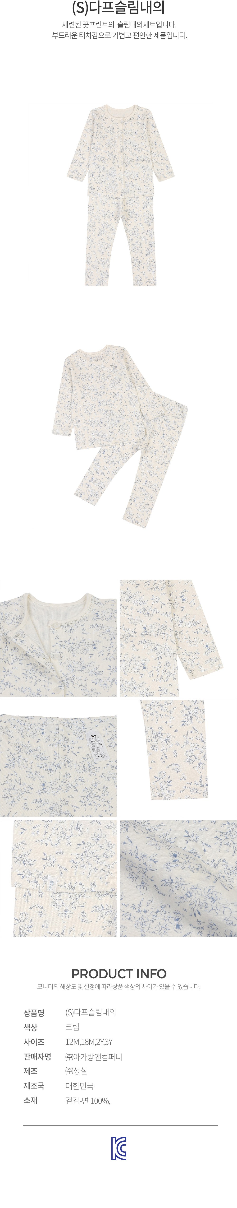 에뜨와 유아용 선물포장 S 다프 슬림 면 내의