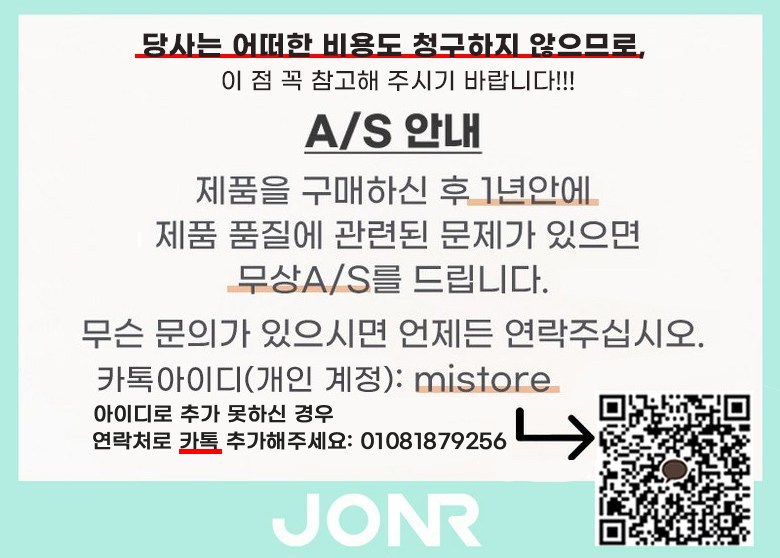 - ㆍ모니터 해상도의 차이로 인해 색상이나 이미지가 실제와 달라, 고객이 단순 변심으로 교환/반품을 무료로 요청하는 경우