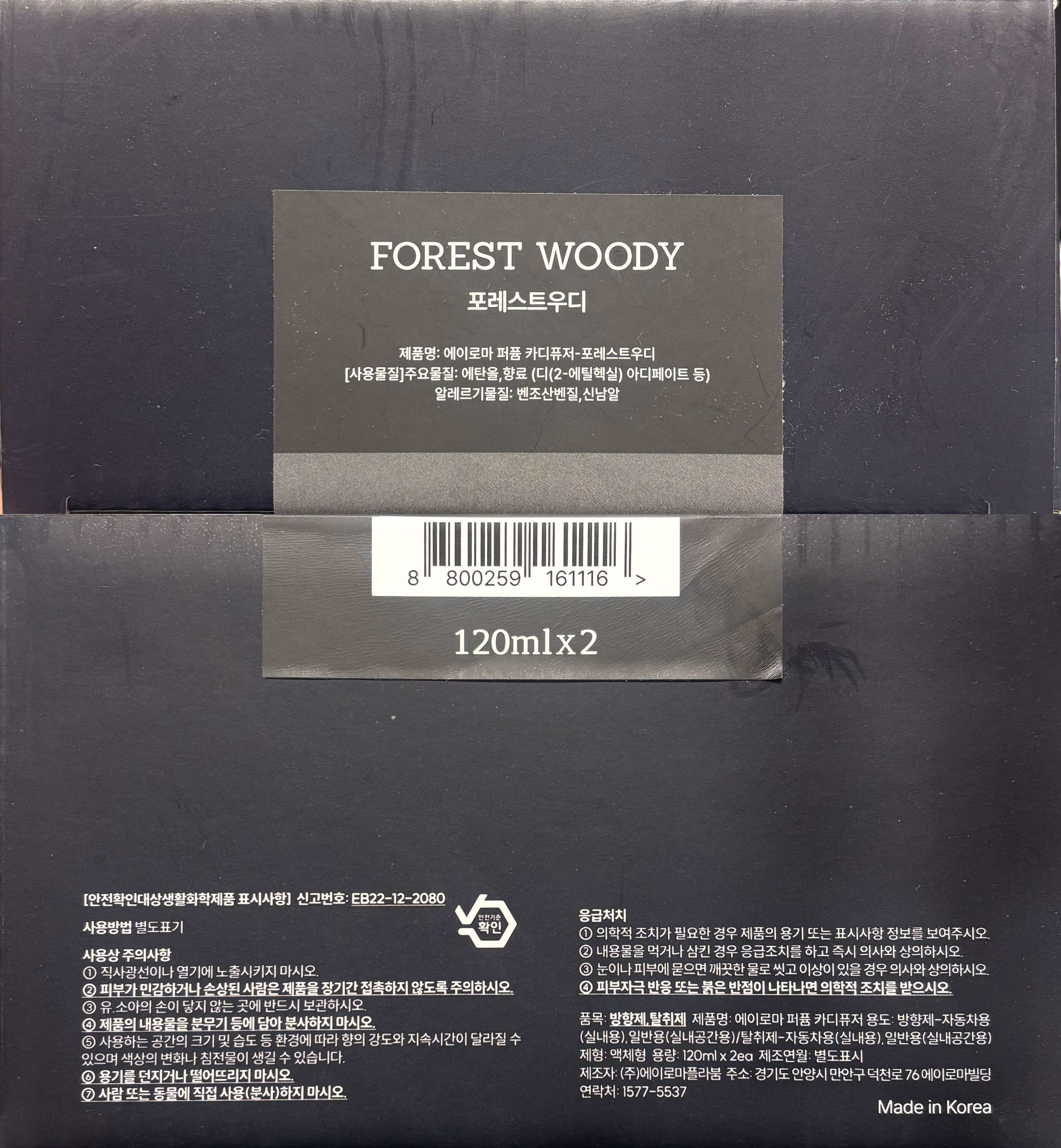 | 품목 및 제품명 | 방향제,탈취제 / 에이로마 퍼퓸 카디퓨저 - 포레스트우디 | 용도(표백제의 경우 계열을 함께표시) 및 제형 | 일반용 (실내공간용),자동차용 (실내용) / 액체형 |