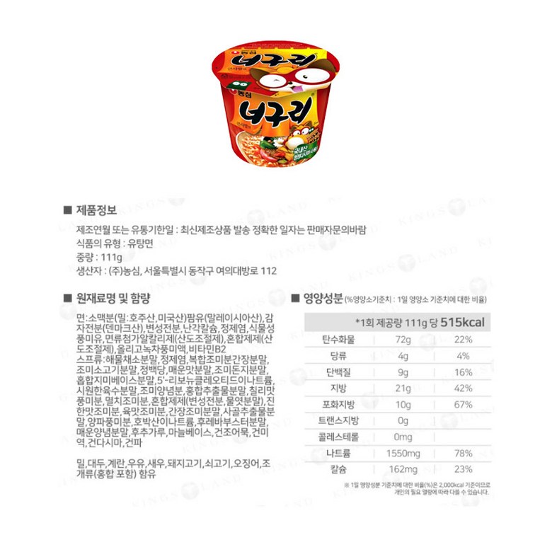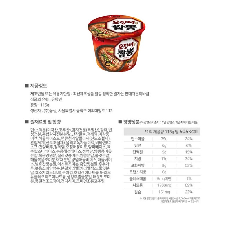 | 제품명 | 상품 상세페이지 참조 | 식품의 유형 | 상품 상세페이지 참조 |