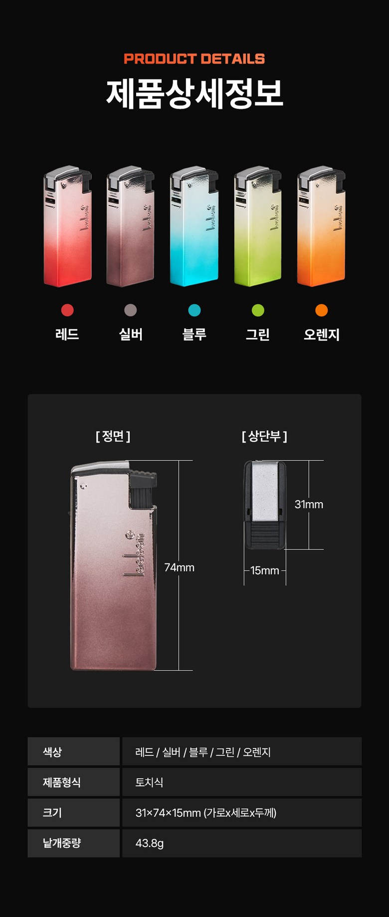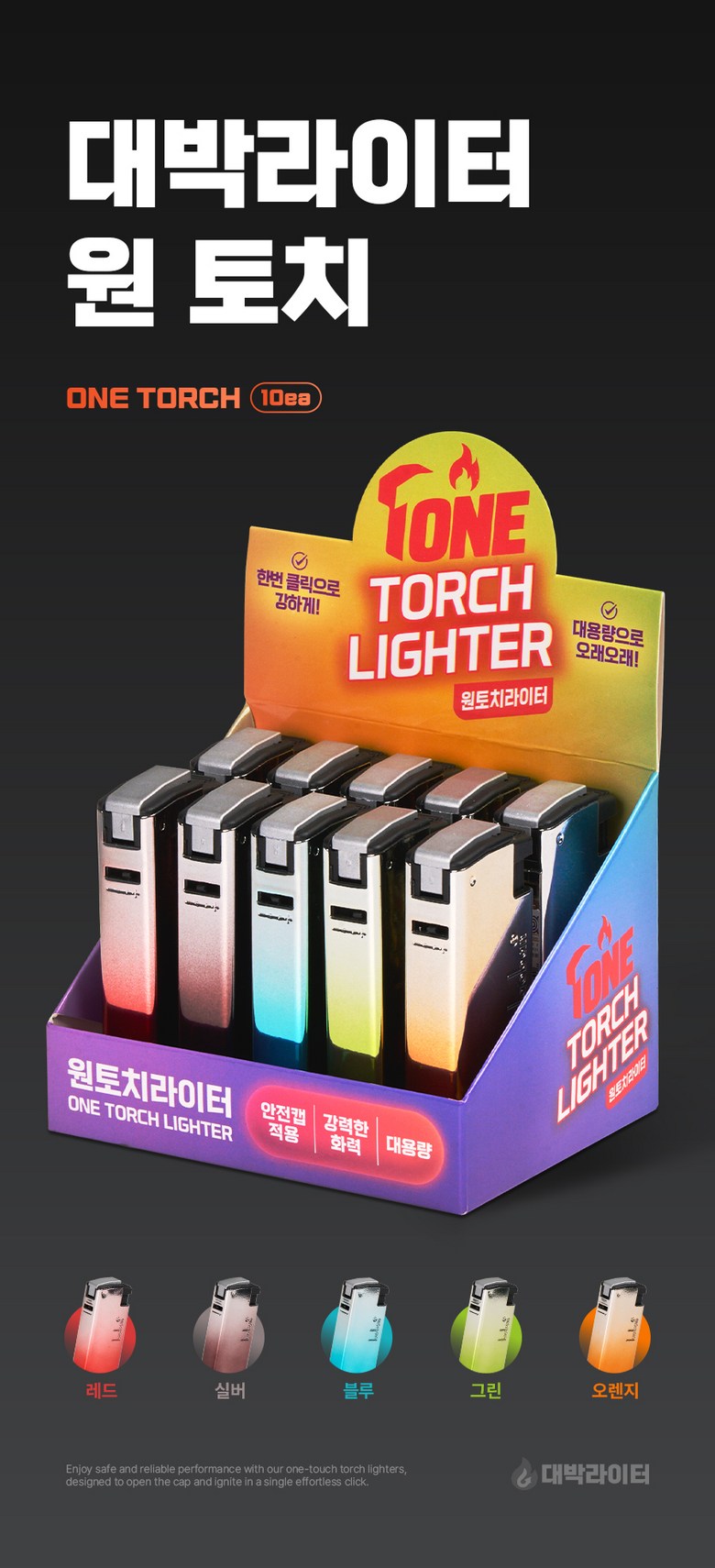 편의점 판매용 국내개발 원토치 그라데이션 원토치 라이터 메탈토치 고급터보 10개, 5색 그라데이션, 10개